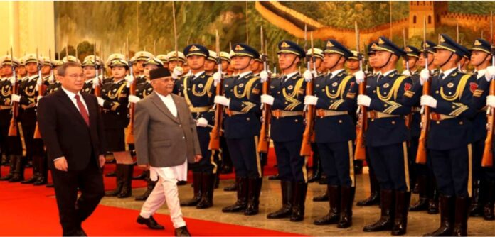 रतन गुप्ता उप संपादक ——-चीन की आधिकारिक यात्रा पर आए प्रधान मंत्री केपी शर्मा ओली के सम्मान में, चीनी पीपुल्स लिबरेशन आर्मी ने मंगलवार को ग्रेट हॉल ऑफ द पीपल में ‘गार्ड ऑफ ऑनर’ पेश किया।इसके बाद चीन के प्रधानमंत्री ली कियांग ने प्रधानमंत्री ओली का स्वागत किया और नेपाल (चीन) द्विपक्षीय बैठक की शुरुआत की.इस बैठक में दोनों देशों के अधिकारियों ने आठ बिंदुओं पर आधारित एक समझौते पर हस्ताक्षर किये