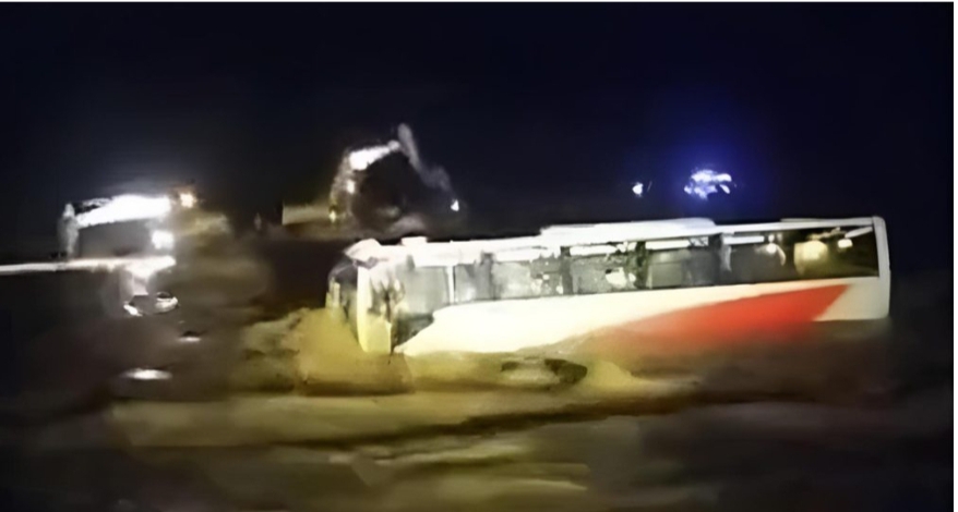 रतन गुप्ता उप संपादक——–नेपाल के पश्चिम राजमार्ग अन्तर्गत पूर्वी नवलपरासी के दुम्किबास स्थित विनयी नदी के बाढ़ के पानी में एक यात्री बस बह गई । तीन बच्चों सहित ३८ यात्रियों को लेकर पूर्वबाट बर्दिया की ओर जा रही भे १ ख ४०८५ नंबर की बस गुरुवार की रात करीब ११ बजे बह गई । बस में सवार सभी यात्रियों को सकुशल उद्धार किए जाने की जिला पुलिस कार्यालय नवलपुर के सूचना अधिकारी डीएसपी मधु नेपाल ने जानकारी दी ।पुलिस ने बताया कि बाढ़ में बह गई बस नदी में करीब एक किलोमीटर दूर मिली है। दुम्किबास क्षेत्र पुलिस कार्यालय के पुलिस निरीक्षक राजन तिमिलसेना ने बताया कि बस हाल ही में मिली है ।पिछले साल दिसंबर में एक ओवर लोडेड भारतीय ट्रक के कारण पुल टूट जाने के बाद इस सड़क पर एक डायवर्सन बनाया गया था । हालांकि, बारिश के साथ आने वाली बाढ़ में यह डायवर्सन बार–बार बह गया, जिससे यातायात अवरुद्ध हुआ ।डायवर्सन बह जाने के कारण यातायात अवरुद्ध है। दुम्किबास से दाउन्ने तक की सड़क कीचड़ से भरी हुई है और वाहन बीच सड़क पर फंसे हुए हैं, जिससे वे पहाड़ी पर नहीं चढ़ पा रहे हैं।