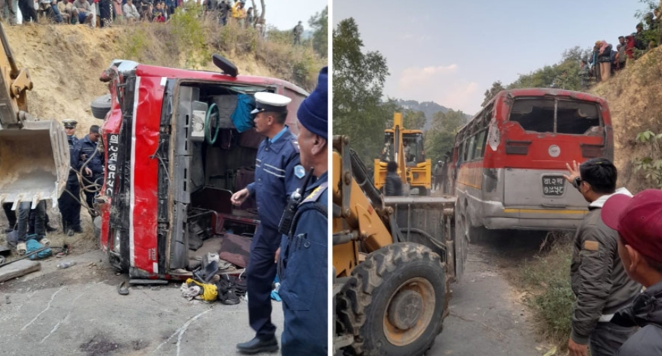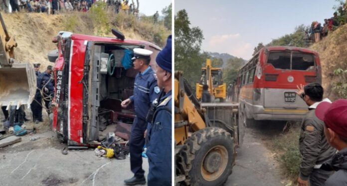 रतन गुप्ता उप संपादक —- जिला नेपाल पुलिस स्टेशन, काठमांडू एसपी और प्रवक्ता अपिल राज बोहोरा ने भी पुष्टि की कि तीन लोगों की मौत हो गई है।नेपाल के काठमांडू के शंखरापुर नगरपालिका-5 में एक स्कूल बस दुर्घटना में तीन लोगों की मौत हो गई।यद्यपि तीन लोगों के मरने की खबर है, लेकिन पुलिस ने मृतक छात्रों का विवरण जारी नहीं किया है।नेपाल काठमांडू जिला पुलिस स्टेशन के एसपी और प्रवक्ता अपिल राज बोहोरा ने पुष्टि की कि तीन लोगों की मौत हो गई है। तीन लोगों की मृत्यु हो गई है – एक एनएमसी अस्पताल में, एक शंकरपुर अस्पताल में, और एक टीचिंग अस्पताल में।उन्होंने कहा, “डॉक्टर ने बताया है कि अब तक तीन लोगों की मौत हो चुकी है।” ऐसा माना जा रहा है कि बस ब्रेक फेल होने के कारण दुर्घटनाग्रस्त हुई। स्कूल ने पिकनिक के लिए बस आरक्षित कर रखी थी।बस संख्या बा 2 खा 7958 मैजुबाहल, चाबाहिल स्थित सत्य साईं अकादमी के छात्रों को पिकनिक के लिए नगरकोट ले जा रही थी। यह दुर्घटना शाम करीब पांच बजे वापसी के समय हुई।बस को सिंधुपालचौक के चौतारा घर निवासी 39 वर्षीय मनीष माझी चला रहा था।दुर्घटना में चालीस लोग घायल हो गये। घायलों में से 24 का पीपुल्स लाइफ केयर अस्पताल में इलाज चल रहा है।पीपुल्स लाइफ केयर अस्पताल में उपचार प्राप्त करने वाले लोग:1) फिलिप लामा, 10 वर्ष2) प्राजोल थापा, वर्ष 103) भीम तमांग वर्ष 114) राम पररियार वर्ष 165) सुजान मगर, उम्र 16 वर्ष6) सिरीशा सिवेदी, वर्ष 127) प्रकाश बाम वर्ष 168) साधन बिस्टा वर्ष 129) आराध्या शाह वर्ष 1010) आशीष तमांग, 15 वर्ष11) स्नेहा राय, उम्र 2112) गंगा ज्योति वर्ष 4213) रंजीत थापा वर्ष 1314) सुहाना गुभाजू, वर्ष 1315) श्रीसंत पौडेल, वर्ष 1516) कल्पना रेजमी वर्ष 3217) बिकल्प श्रेष्ठ वर्ष 1018) नयस्का पांडे, उम्र 2319) सुबिता तमांग, 14 वर्ष20) निशांत पौडेल, 14 वर्ष21) सौगात मगर वर्ष 1422) आबीत खान वर्ष 1023) (2 लोगों के नाम अभी घोषित होना बाकी है)शंखरापुर अस्पताल में उपचार1) आदित्य सुनार वर्ष 12/132) धीरज सऊद वर्ष 14,3) सन्देश गिरी वर्ष 13दस लोगों का इलाज अत्तरखेल स्थित नेपाल मेडिकल कॉलेज और तीन का इलाज महाराजगंज स्थित त्रिभुवन यूनिवर्सिटी टीचिंग हॉस्पिटल में चल रहा है।