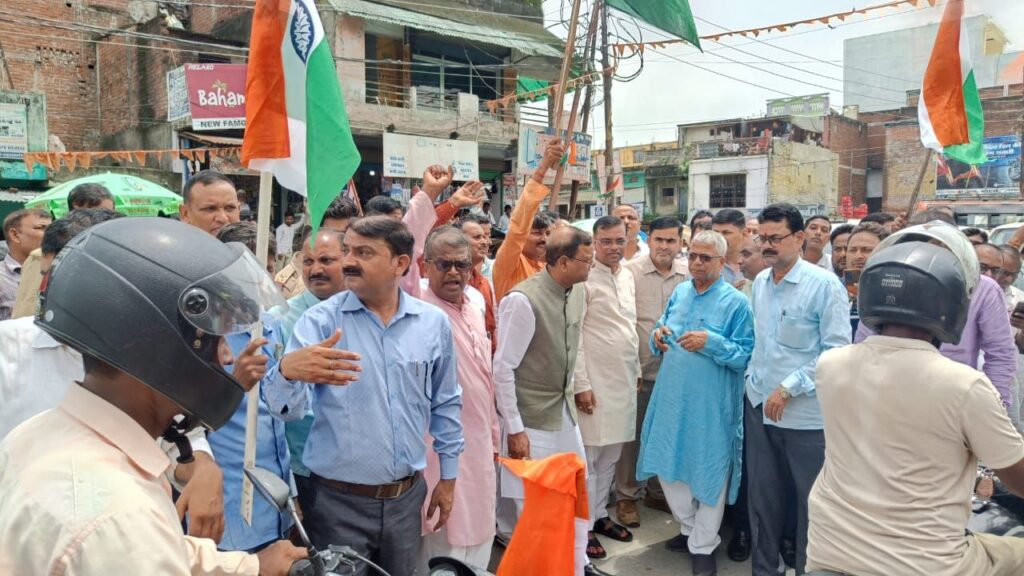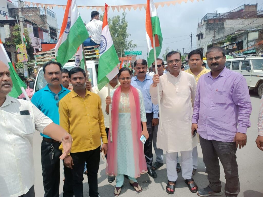 देश की आजादी के पर्व स्वतंत्रता दिवस के मौके पर ‘ हर घर तिरंगा’ अभियान चलाया जा रहा है। इस क्रम में बुधवार को सुबह हाथों में तिरंगा लिए हुए भाजपा कार्यकर्ताओं ने नगर पंचायत परतावल में पैदल मार्च किया। इस मार्च के दौरान नगर के लोगों में देशभक्ति की भावना को मजबूत करने और अपने तिरंगे को लेकर भावना जगाने के लिए युवाओं ने भारत माता की जय और देशभक्ति के नारे लगाए। ब्लॉक परिसर से परतावल बाजार, कस्बा व मुख्य मार्गों से तिरंगा पैदल यात्रा सभी के लिए आकर्षण का केंद्र रही। इस अभियान के तहत प्रत्येक नागरिक को अपने घर पर तिरंगा फहराने के लिए प्रोत्साहित किया गया।