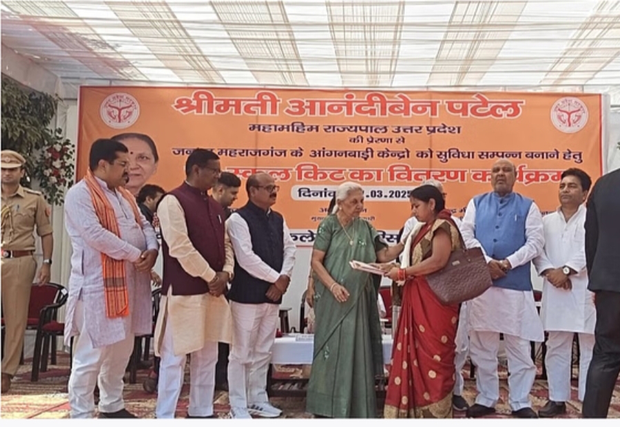 रतन गुप्ता उप संपादक ——–महराजगंज कलक्ट्रेट परिसर में आयोजित कार्यक्रम की शुरुआत राष्ट्रगान के साथ हुई, जिसके बाद राज्यपाल ने जिले के आंगनबाड़ी केंद्रों को सुविधा सम्पन्न बनाने के उद्देश्य से प्री-स्कूल किट का वितरण किया।उत्तर प्रदेश की राज्यपाल आनंदीबेन पटेल का सोमवार को जनपद में आगमन हुआ। पुलिस लाइन परिसर में उन्हें गॉर्ड ऑफ ऑनर देकर सम्मानित किया गया। इसके बाद वह मुख्य सड़क मार्ग से होते हुए कलक्ट्रेट में पहुंचीं, जहां उनका स्वागत किया गया।कार्यक्रम की शुरुआत राष्ट्रगान के साथ हुई, जिसके बाद राज्यपाल ने जिले के आंगनबाड़ी केंद्रों को सुविधा सम्पन्न बनाने के उद्देश्य से प्री-स्कूल किट का वितरण किया। सरकारी योजनाओं के लाभार्थियों को प्रमाण पत्र, भूमि पट्टा, आंगनबाड़ी किट और पोषण पोटली वितरित की।इस अवसर पर जिला पंचायत अध्यक्ष रविकांत पटेल , पनियरा विधायक ज्ञानेंद्र सिंह, सदर विधायक जयमंगल कन्नौजिया, जिलाधिकारी अनुनय झा, पुलिस अधीक्षक सोमेंद्र मीणा, मुख्य विकास अधिकारी, जिला कार्यक्रम अधिकारी सहित अन्य अधिकारीगण एवं लाभार्थी उपस्थित रहे