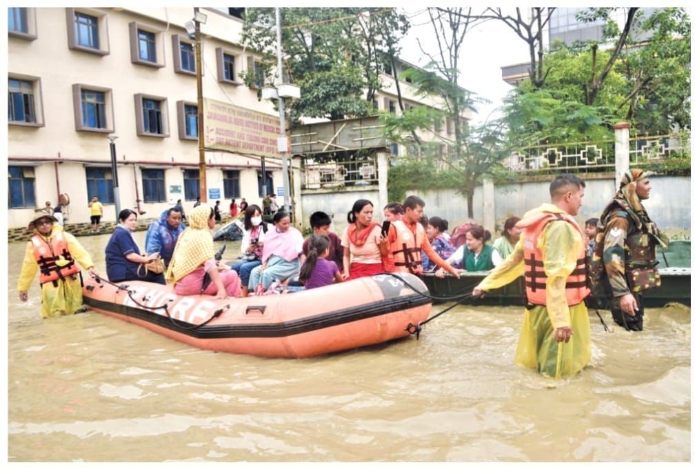 मणिपुर फायर सर्विस, असम राइफल्स, एसडीआरएफ और एएनडीआरएफ बाढ़ में फंसे लोगों को बचाने के लिए काम कर रहे हैं।