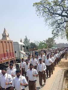 मुख्य वक्ता के उद्बोधन के बाद, मुजरी में भव्य पथ संचलन पूर्ण गणवेश स्वयंसेवको ने निकाला ।कई स्थानो पर नागरिको ने स्वयंसेवकों पर पुष्पवर्षा किया ।