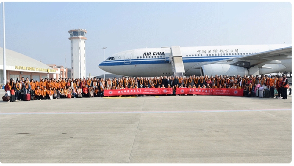 रतन गुप्ता उप संपादक —-लुंबिनी में शनिवार को होने वाली पूजा में हिस्सा लेने के लिए 227 चीनी भिक्षु नेपाल पहुंचे हैं. वे एयर चाइना के चार्टर्ड विमान से शुक्रवार की दोपहर गौतमबुद्ध हवाई अड्डे भैरहवा पर उतरे।चीन के गुआंग्डोंग प्रांतीय जातीय और धार्मिक मामलों के आयोग के उप निदेशक चांग शियाओहुई के नेतृत्व में टीम भैरहवा पहुंची। चीनी राजदूत चेन सोंग ने ट्विटर पर उनकी तस्वीर पोस्ट कर उनका स्वागत किया.राजदूत चेन ने कहा, ”अब तक की सबसे बड़ी संख्या में यात्रियों के साथ विमान से पहुंचे चीनी भिक्षुओं का स्वागत है, बौद्ध धर्म सांस्कृतिक आदान-प्रदान के माध्यम से नेपाल और चीन को जोड़ेगा।” राजदूत ने 227 लोगों का जिक्र किए बिना 220 से अधिक भिक्षुओं के लिए इस शब्द का इस्तेमाल किया .नौवां नानहाई बौद्ध धर्म गोलमेज सम्मेलन शुक्रवार को राजधानी में आयोजित किया गया। प्रधानमंत्री केपी शर्मा ओली ने इसका उद्घाटन किया.चीन, थाईलैंड, लाओस, श्रीलंका, कंबोडिया, वियतनाम, म्यांमार, बांग्लादेश, मंगोलिया समेत 20 देशों के धार्मिक नेता और प्रतिनिधि नानहाई बौद्ध धर्म गोलमेज सम्मेलन में भाग लेने के लिए काठमांडू आए हैं।चीन की कम्युनिस्ट पार्टी के हैनान प्रांतीय संयुक्त मोर्चा कार्य विभाग के उप मंत्री वांग यू चोंग के नेतृत्व में एक प्रतिनिधिमंडल भी भाग ले रहा है। चीनी उप मंत्री वांग हैनान प्रांतीय सरकार के धार्मिक मामलों के ब्यूरो के निदेशक भी हैं