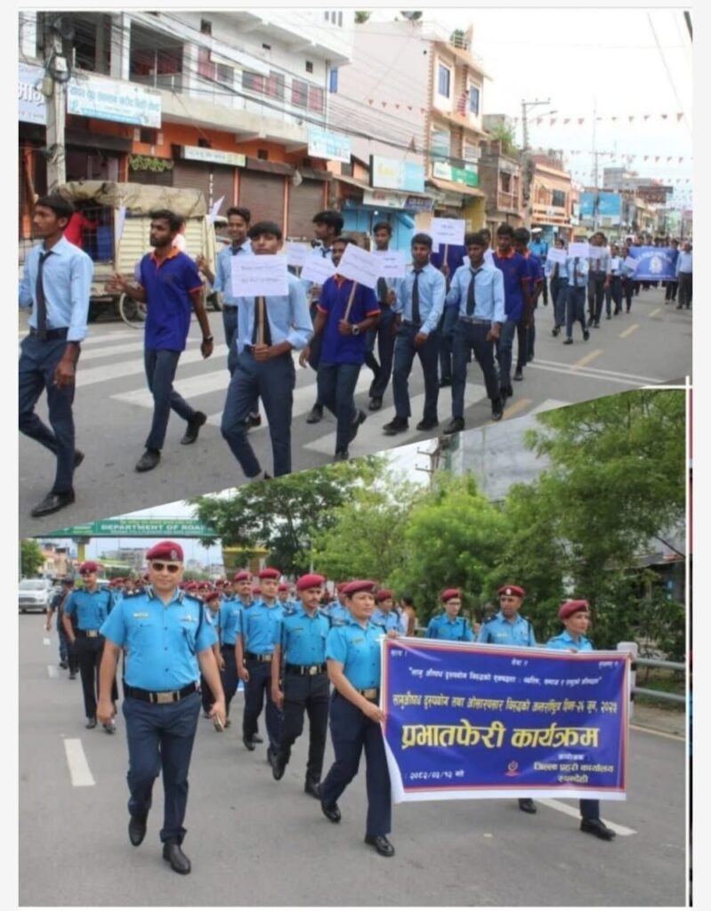 काठमाण्डौ,नेपाल – अंतर्राष्ट्रीय मादक पदार्थ विरोधी दिवस के अवसर पर जिला प्रशासन कार्यालय, रूपन्देही द्वारा भैरहवा में तथा जिला पुलिस कार्यालय, रूपन्देही के सहयोग से नशीली दवाओं के दुरुपयोग और अवैध व्यापार (तस्करी) के खिलाफ एक रैली और सप्ताह भर चलने वाला जन जागरूकता कार्यक्रम सफलतापूर्वक संपन्न हुआ।
