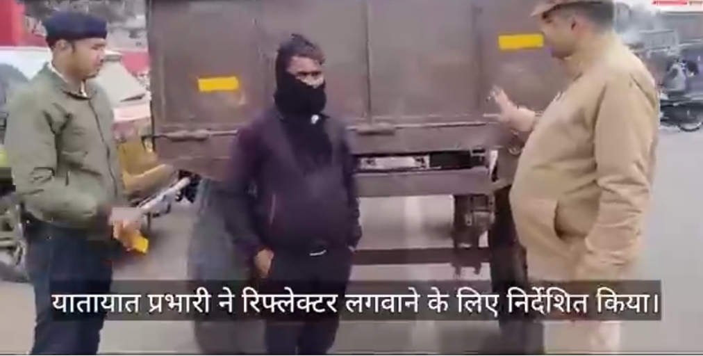 महराजगंज में वाहनों पर लगवाया गया रिफ्लेक्टर