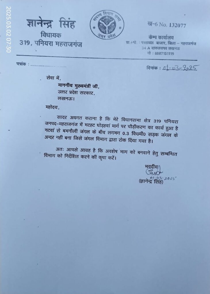 - भटहट घोड़हवां मार्ग पर चौड़ीकरण का कार्य हुआ है नटवां से बभनौली जंगल के बीच लगभग 0.3 कि०मी० सड़क जंगल के अन्दर नहीं बना जिसे जंगल विभाग द्वारा रोक दिया गया है।