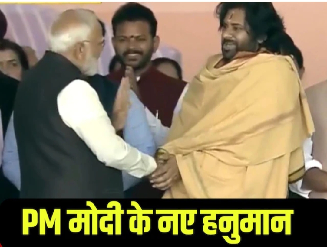 रतन गुप्ता उप संपादक —– दिल्ली की सीएम नई सीएम रेखा गुप्ता के शडपथ का मंच सजा हुआ था. देश के कई राज्यों के मुख्यमंत्री मंच को सुशोभित कर रहे थे. फिर पीएम मोदी की इंट्री होती है, सबको नमस्कार करते हु. दिल्ली के रामलीला में राजनीति की एक अलग ही बयार बह रही है. देश के कद्दावर नेताओं का जमावड़ा लगा हुआ है. दिल्ली में 27 साल के वापसी पर भाजपा सीएम पद की शपथ का भव्य आयोजन कर रही है. भाजपा शासित राज्यों के कद्दावार नेता जुटे हुए हैं. दिल्ली की नई सीएम रेखा गुप्ता के शपथ मंच पर मुख्यमंत्रियों का जामवड़ा लगा हुआ था, तभी पीएम मोदी की इंट्री होती है.पीएम मोदी मंच पर खड़े सभी मुख्यमंत्रियों को हाथ जोड़कर नमस्कार करते हुए वह आगे बढ़ते जा रहे थे, तभी उनकी नजर हनुमान पर पड़ी. जी हां, दक्षिण भारत में हिंदू नेता का प्रतिक और आंध्र प्रदेश के डिप्टी सीएम पवन कल्याण को देखते ही पीएम मोदी रूक जाते हैं. उनका हाथ खिंच कर हाथ-मिलाते हैं, ठीक-ठाक समय तक हाल चाल करते हैं. साथ ही उन्होंने आंध्र प्रदेश के मुख्यमंत्री चंद्र बाबू नायडू से भी हाथ मिलाकर आगे बढ़ते हैं.दिल्ली के रामलीला मैदान में आज दिल्ली की नई मुख्यमंत्री रेखा गुप्ता का शपथ समारोह चल रहा है. मंच पर रेखा गुप्ता के अलावा उनकी मंत्रालय के 6 नेता खड़े थे. साथ ही रामलीला मैदान में ऐतिहासिक पल का साक्षी होने भाजपा शासित राज्यों के मुख्यमंत्री पहुंचे हुए थे. मगर, पवन कल्याण पहले से इस भीड़ में अलग दिख रहे थे. शरीर पर भागवा वस्त्र धारण किये, माथे पर टीका के साथ-साथ और चेहरे पर तेज के साथ अलग ही दिख रहे थे.प्रधानमंत्री नरेंद्र मोदी जैसे ही मंच पर सवार हुए, सभी नेता उनके स्वागत में खड़े हो गए थे. पीएम मोदी सबको हाथ जोड़कर नमस्कार करते हुए गुजर रहे थे. उसी नेताओं की भीड़ में पवन कल्याण खड़े थे