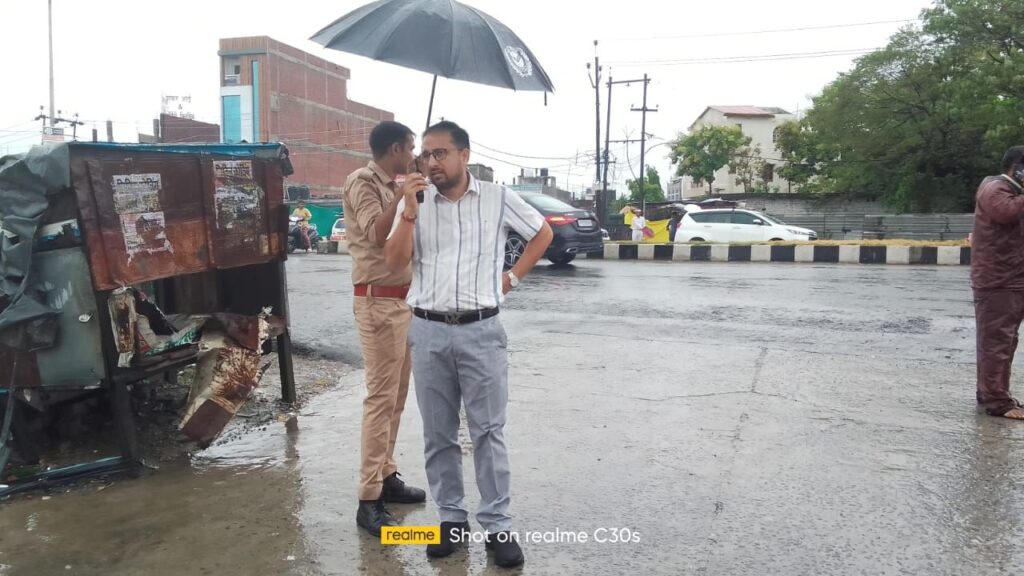 गोरखपुर। शहर में लगातार हो रहे बारिश के दृष्टिगत नगर आयुक्त गौरव सिंह द्वारा आज शहर के विभिन्न स्थलों का निरीक्षण कर जल निकासी सुनिश्चित कराया जाने हेतु संबंधित को निर्देशित किया जा रहा है। नगर आयुक्त द्वारा मुंशी प्रेमचंद पार्क के पास, एचपी स्कूल वाली गली, गोपालपुर दाउदपुर, विजय चौराहे के पास सहित अन्य स्थानों का निरीक्षण किया गया एवं समस्त ज़ोनल अधिकारी, सफाई निरीक्षक एवं निर्माण विभाग के समस्त अभियंता को लगातार क्षेत्र में रहकर नालियों की सफाई कराते रहने एवं जलभराव वाले स्थलों पर स्थापित पंप सेट एवं सम्पवेल को लगातार चलाते रहने हेतु निर्देशित किया गया।