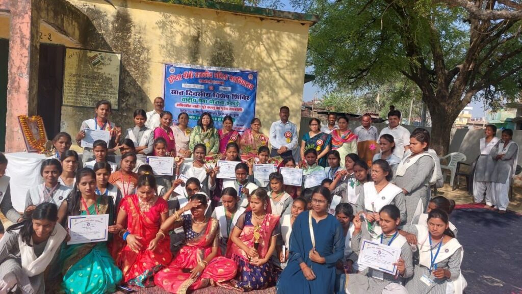 सात दिवसीय विशेष शिविर में सड़क सुरक्षा जागरूकता प्रतियोगिता के विजेताओं साक्षी पटेल ,शिल्पी द्विवेदी शालिनी , को पुरस्कृत किया गया सर्वश्रेष्ठ टोली टोली नंबर 3 सावित्रीबाई फुले रही ।रंगोली प्रतियोगिताओं की विजेताओं को पुरस्कृत किया गया किया ।रिया यादव सर्वश्रेष्ठ स्वयंसेवी रही।