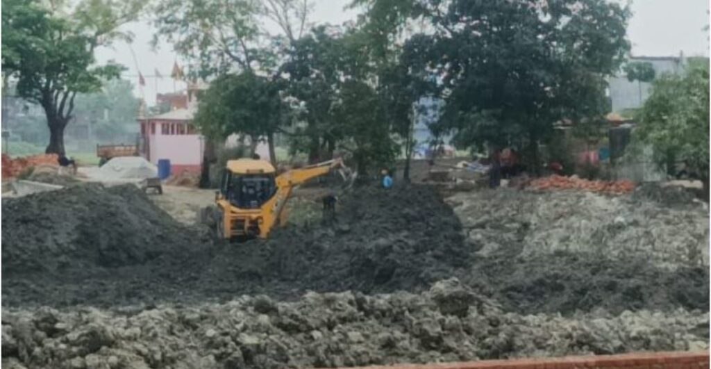 मनरेगा मजदूरों की उड़ायी जा रही धज्जियां बरवाखुर्द में जेसीबी मशीन से हो रही पोखरी की खोदाई,