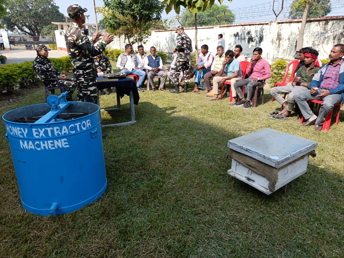 रतन गुप्ता उप संपादक—— 43वीं सशस्त्र सीमा बल, सिद्धार्थनगर की सीमा चौकी लोहटी में मधुमक्खी पालन पर कार्यशाला का आयोजन किया गया I 43वीं वाहिनी सशस्त्र सीमा बल, सिद्धार्थनगर द्वारा भारत- नेपाल सीमा की सुरक्षा के साथ-साथ सीमावर्ती गाँवो मे बुनियादी सुविधाएं उपलब्ध कराने हेतु अनेक जनकल्याणकारी कार्यक्रम जैसे ग्रामीणों को कौशल विकाश के माध्यम से रोजगार प्राप्त करने, ग्रामीणों के मुलभुत सुविधाओं को मुहैया कराने, खेल-कूद के क्षेत्र में युवाओं को आगे बढ़ाने तथा शैक्षिक भ्रमण के माध्यम से ग्रामीण क्षेत्र के छात्रों को अपने देश के ऐतिहासिक, शैक्षणिक संस्थाओं व संस्कृति से रु-ब-रु होने का अवसर प्रदान करने जैसे कल्याणकारी कार्यक्रम आयोजित करती आ रही है I इसके साथ ही एस.एस.बी. नशा मुक्त भारत अभियान, स्वच्छता अभियान आदि को संचालित कर सीमावर्ती लोगो को जागरूक करने तथा उक्त अभियानों में लोगो की भागीदारी कर भाई चारे के वातावरण को कायम रखती आ रही है I इस वाहिनीं द्वारा लगातार सीमाक्षेत्र के छात्राओं को मार्गदर्शन कर सेना में भर्ती होने के लिए प्रोत्साहित करने के साथ साथ ग्रामीण क्षेत्र के लोगो को साइबर क्राइम, मानव तस्करी, बाल श्रम आदि के बारे में जागरूक करने हेतु प्रयासरत रही है I इसी क्रम में आज दिनांक 29.11.2024 को 43वीं सशस्त्र सीमा बल, सिद्धार्थनगर की सीमा चौकी लोहटी में 43वीं वाहिनी सशस्त्र सीमा बल, सिद्धार्थनगर के प्रशिक्षक आरक्षी अविनाश भारती और सचिन कुमार विश्वकर्मा द्वारा मधुमक्खी पालन पर कार्यशाला का आयोजन कर सीमावर्ती ग्रामीणों को वैज्ञानिक तकनीक से मधुमक्खी पालन के बारे में प्रशिक्षित किया गया जिससे प्रशिक्षण प्राप्ति के पश्चात सीमावर्ती ग्रामीण इसे व्यवसाय के रूप में अपनाकर रोजगार के अवसर का निर्माण कर सके I इस प्रशिक्षण में लोहटी गाँव से कुल-14 ग्रामीण शामिल हुए I